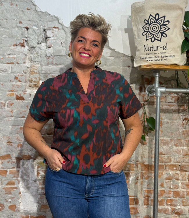 Deze blouse is dus niet alleen een mooie blikvanger, maar ook een slimme aanvulling op je kast. Door de combinatie van print, pasvorm en natuurlijke stof heb je iets in handen dat bijzonder aanvoelt én draagbaar blijft. Geen blouse die na één keer leuk is, maar eentje waar je op terug blijft grijpen.