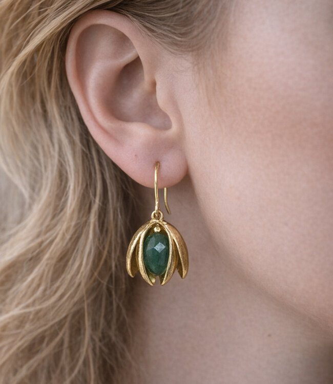 FAIRTRADE Oorbellen met halfedelsteen SNEEUWVLOK GREEN verguld