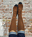 Deze lange sokken of kniekousen komen tot net onder je knie, en zijn goed te dragen in laarzen. Wij dragen ze ook wel eens over onze broek, als beenwarmers. De sokken hebben allemaal een mooi Noors motiefje, dat maakt de sokken bijzonder mooi. De sokken hebben helemaal bovenin de boord een aantal rijtjes ingebreid elastiek. Deze zie en voel je niet. Maar, zijn wel belangrijk want op deze manier zakken de wollen sokken niet af. Niets irritanter dan afzakkende sokken, toch?