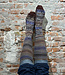 Deze lange sokken of kniekousen komen tot net onder je knie, en zijn goed te dragen in laarzen. Wij dragen ze ook wel eens over onze broek, als beenwarmers. De sokken hebben allemaal een mooi Noors motiefje, dat maakt de sokken bijzonder mooi. De sokken hebben helemaal bovenin de boord een aantal rijtjes ingebreid elastiek. Deze zie en voel je niet. Maar, zijn wel belangrijk want op deze manier zakken de wollen sokken niet af. Niets irritanter dan afzakkende sokken, toch?
