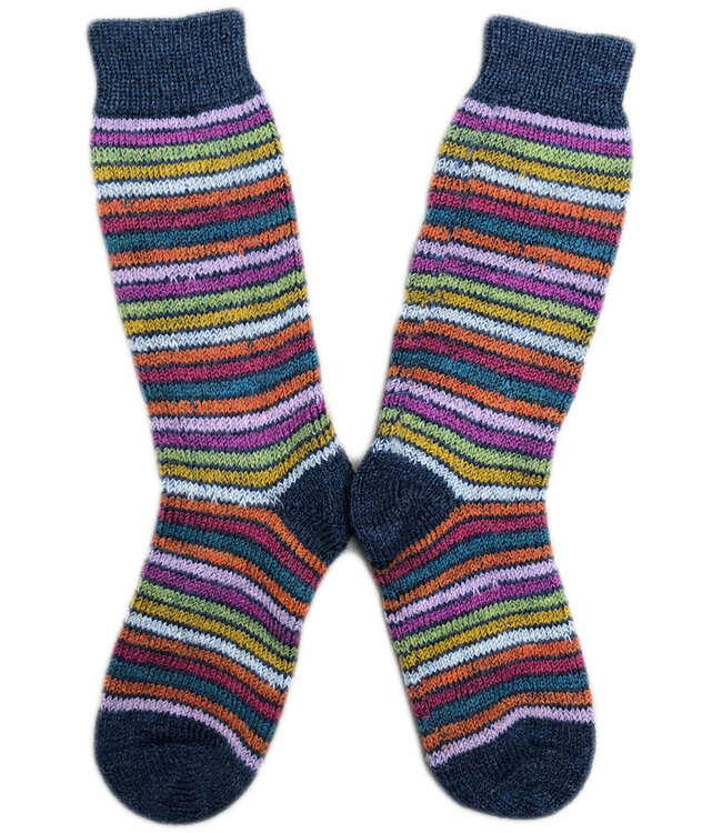 Let op! Wollen sokken nodigen uit om lekker in huis te dragen, dat is natuurlijk geen probleem: maar doe dat altijd in schoenen of in sloffen. Als je 100% wollen sokken als huissok draagt, zullen ze snel slijten en ontstaan er gaten. Deze zijn overigens makkelijk te “ stoppen” . Op youtube vind je hier instructies voor. Daarnaast zijn wollen sokken glad: pas op voor trappenlopen. Gaten zijn helaas niet helemaal te voorkomen. Na verloop van tijd slijten 100% wollen sokken. Daarnaast is het belangrijk dat wollen sokken niet te groot of te klein gekozen worden. Ook goed passend schoeisel is van belang om de levensduur van je sokken te verlengen.