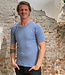 Het shirt heeft een normale pasvorm met iets extra lengte. Rutger draagt op de foto een maat L, zijn gebruikelijke maat. De stof is licht elastisch en vormt zich naar je lichaam.