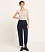 Deze jeans heeft een mid waist fit en valt echt heel goed op maat. De tailleband zit precies waar je ‘m wilt hebben: niet te hoog, niet te laag. De binnenbeenlengte van ca. 70 cm zorgt voor een modieuze cropped lengte, en door een beetje stretch in de stof beweegt de broek lekker met je mee. De kleur? Een prachtige diepe black/blue wassing die je figuur flatteert én eindeloos te combineren is.