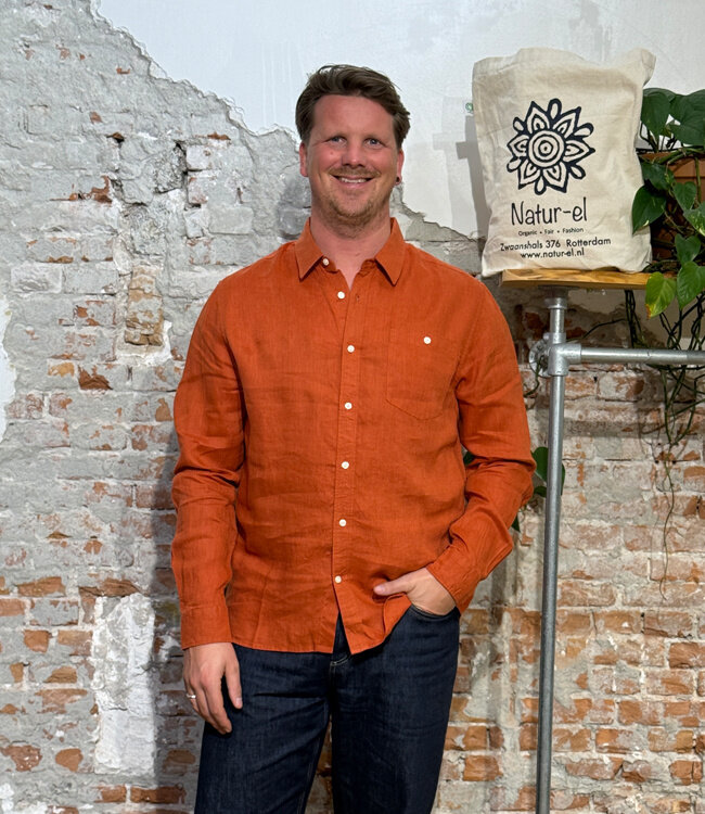 Linnen is hét materiaal voor zomerweer. Het ademt, voelt koel aan op de huid en draagt losjes om je heen. Dit overhemd is gemaakt van puur linnen en wordt, zoals linnen hoort te doen, alleen maar zachter naarmate je het vaker draagt en wast.