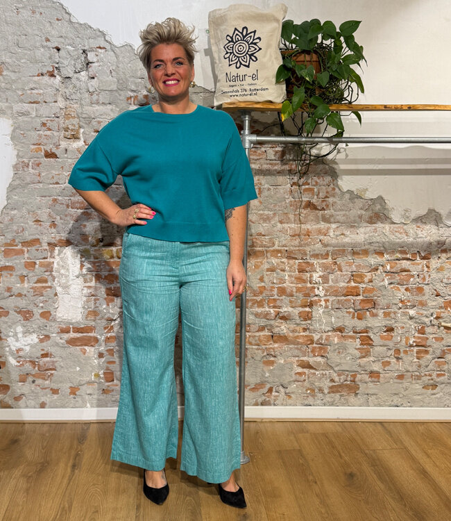 MADNES broek MARIE TEAL van linnen en biokatoen