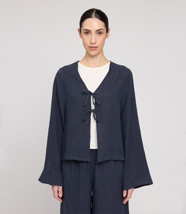 MAZINE linnen blouse met strikken ELFIE BLUE