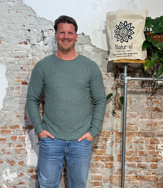 Deze trui is gemaakt van 100% biologisch gebreid katoen en is GOTS én Fairtrade gecertificeerd. Volledig vegan, eerlijk geproduceerd en ontworpen om lang mee te gaan.