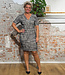 De zwart-witte print springt direct in het oog – speels en grafisch tegelijk. De diepe V-hals voor én achter geeft de jurk een elegante touch. Het model valt net boven de knie, en door de stevige stretch tricot stof zit het altijd mooi aangesloten zonder te strak te voelen. Een perfecte combinatie van stijl en draaggemak.