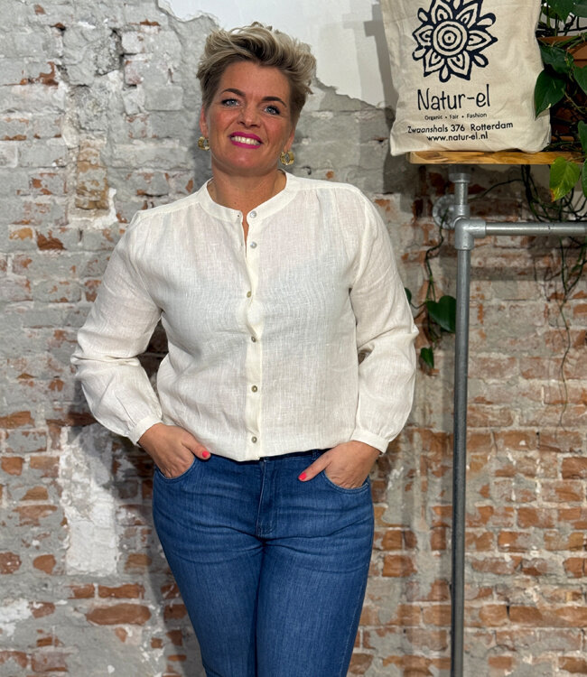 Een blouse van puur linnen is een fijne keuze als je graag natuurlijke materialen draagt en minder synthetische troep op je huid wilt. En omdat dit zo’n tijdloos model is, heb je er ook niet maar één seizoen plezier van.