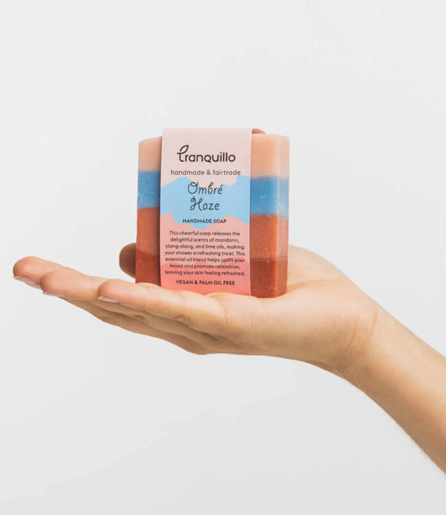 Soms heb je van die ochtenden waarop alles nét wat lichter mag voelen. Deze Ombré Haze zeep van Tranquillo is zo’n klein momentje voor jezelf: zacht schuim, een frisse mandarijnengeur en kleuren waar je spontaan blij van wordt.